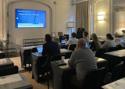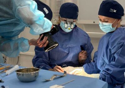 Durante su estadía en París, la Dra. Triantafilo participó en diversas instancias de formación teórica y práctica, integrándose al trabajo clínico del equipo. Asimismo, tuvo la oportunidad de asistir directamente a la Dra. Aroca en procedimientos clínicos y quirúrgicos, adquiriendo experiencia en técnicas avanzadas y fortaleciendo su formación profesional.